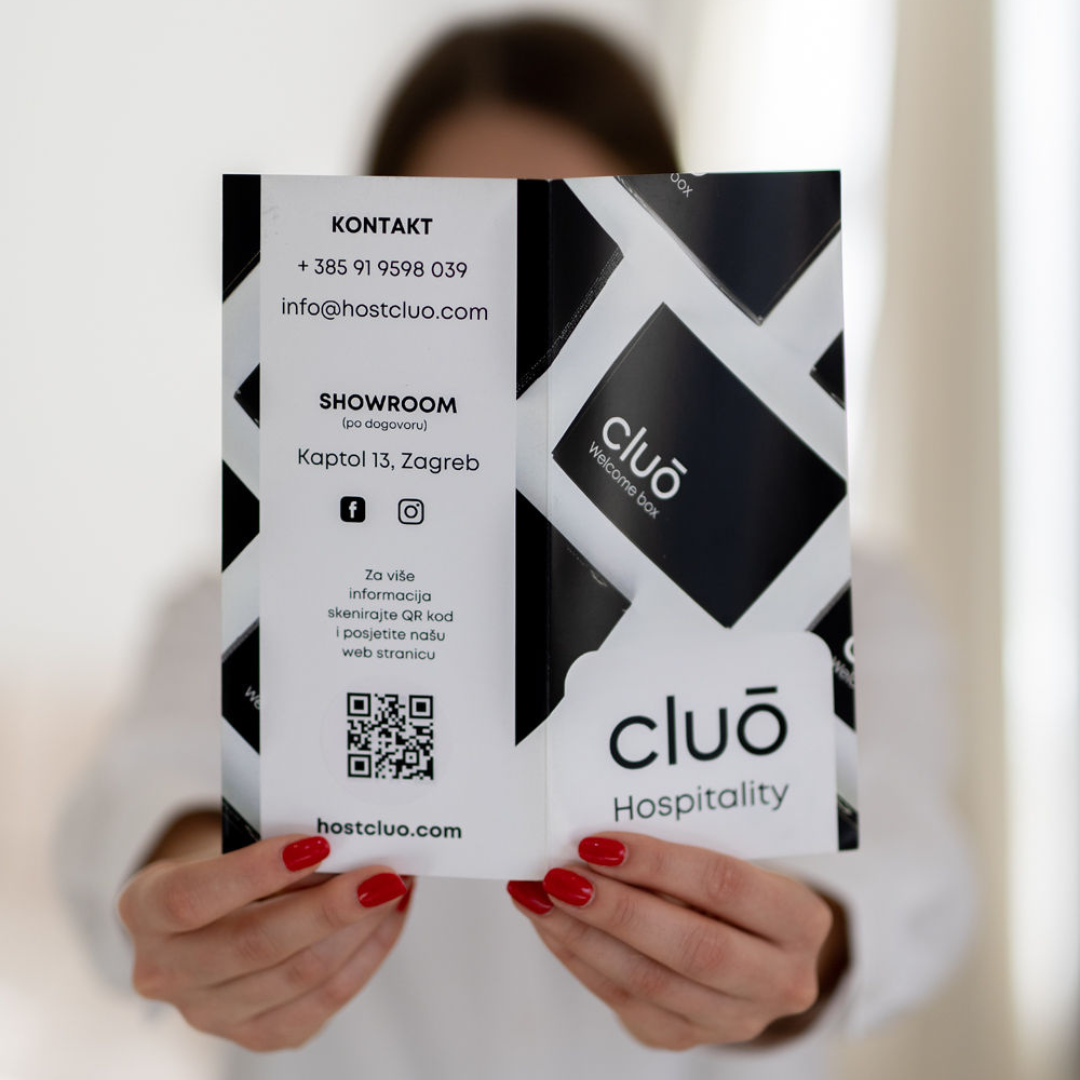 Cluo "Welcome Box" dočekuje goste i definira njihov doživljaj vaše usluge. Profesionalnost, urednost i kvaliteta samo su neke od vrijednosti koje će "Welcome Box" predstavljati u vašem smještaju.